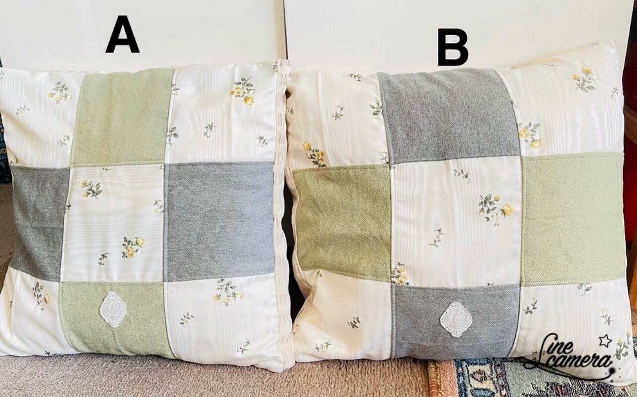 イエローフラワーホワイト+グレー(グリーン)ウール生地を組み合わせてパッチワークしてみました。